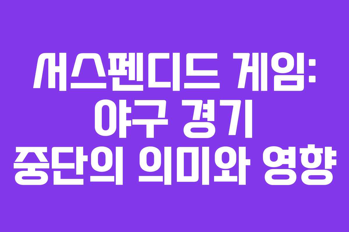 서스펜디드 게임은 야구에서 경기를 중단하고 추후에 동일한 상황으로 재개하는 규정입니다. 이는 주로 우천, 눈, 화재 등으로 인해 경기가 진행될 수 없을 때 발생합니다. 이번 글에서는 서스펜디드 게임의 정의, KBO 리그 내 사례, 그리고 그로 인한 팀들의 영향에 대해 설명합니다.