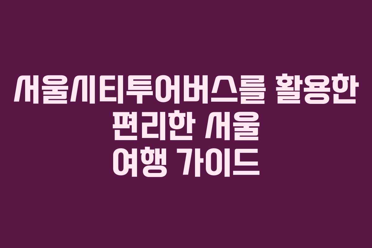 서울시티투어버스를 활용한 편리한 서울 여행 가이드