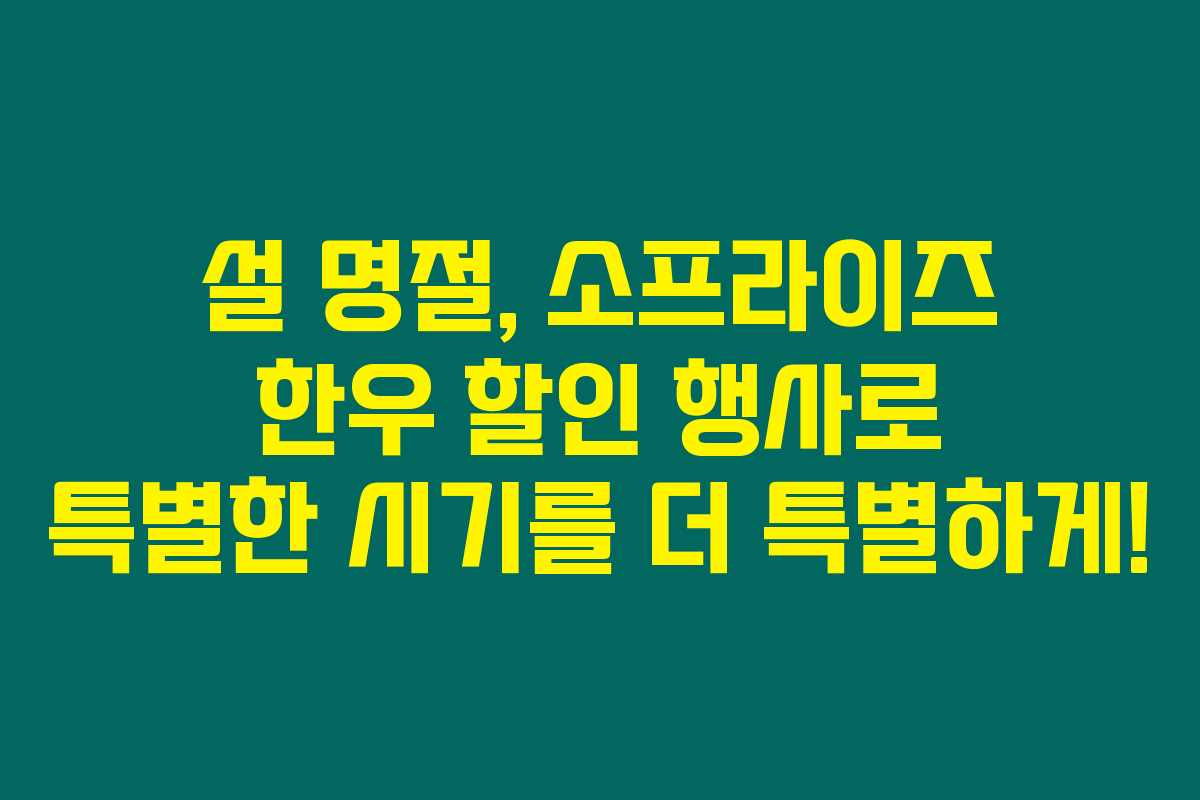 제가 직접 경험해본 결과로는, 다가오는 설 명절에 한우 할인 행사인 ‘소프라이즈’가 큰 인기를 끌고 있답니다. 이번 행사에서는 한우를 최대 50% 할인된 가격에 구매할 수 있어서, 가족과 함께하는 특별한 명절을 더욱더 기대하게 만들어요. 아래를 읽어보시면 이번 세일의 구체적인 내용과 혜택을 확인하실 수 있을 거예요.