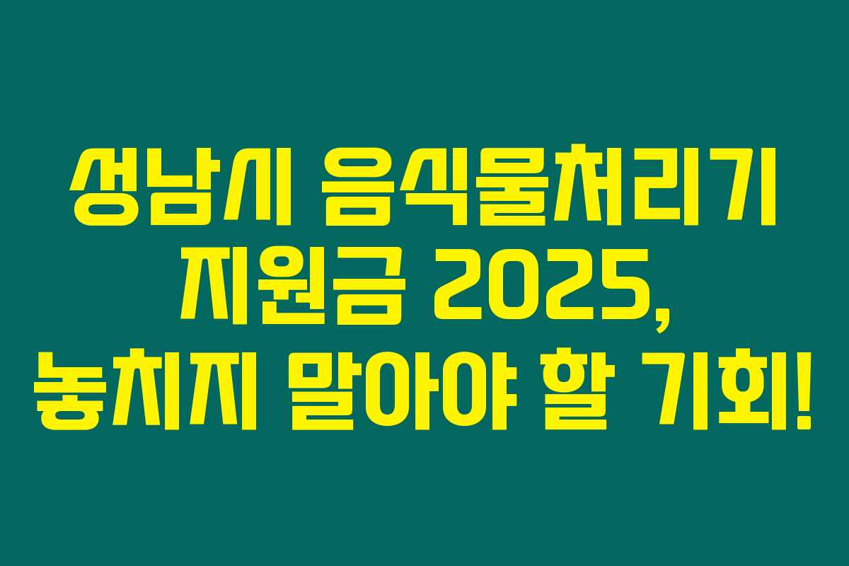 성남시 음식물처리기 지원금 2025, 놓치지 말아야 할 기회!