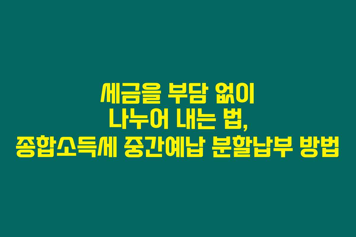 종합소득세 중간예납 분할납부에 대해 상세히 알려드립니다. 제가 직접 경험해본 결과, 이러한 방법은 세금 부담을 덜고 자금 관리에 도움이 되는 유용한 옵션이에요. 이번 글에서는 중간예납 분할납부 방식에 대해 알아볼 테니, 차근차근 읽어보시면 큰 도움이 될 거랍니다.