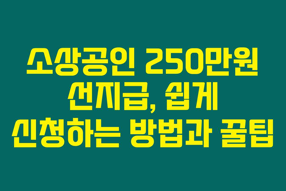 이번 소상공인 250만원 선지급은 코로나19로 어려움을 겪고 있는 소상공인 분들에게 큰 도움이 될 것입니다. 제가 직접 체크해본 결과로는, 신청 방법이 매우 간단하니 꼭 활용해보세요!