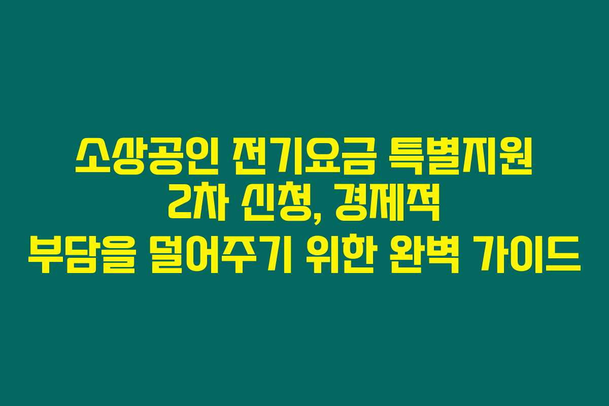 영세 소상공인 여러분! 전기요금을 줄이고 싶다면 이 글에 주목해 주세요. 소상공인 전기요금 특별지원 2차 신청이 오늘부터 시작됩니다. 이번 지원은 전기요금 부담을 덜어주기 위해 마련된 것이니 이번 기회를 놓치지 마세요.