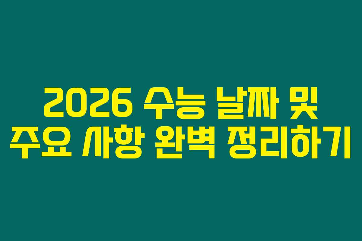 2026 수능 일정을 알고 싶으신가요? 그렇다면 여러분은 중요한 시험 준비를 위한 첫걸음을 뗀 거예요. 특히 2026학년도 대학수학능력시험에 대해 중요한 날짜와 과목을 미리 파악해 두는 건 정말 큰 도움이 될 거랍니다. 제가 알려드리는 정보를 통해 수능 준비에 대한 궁금증을 시원하게 해결해 드릴게요.