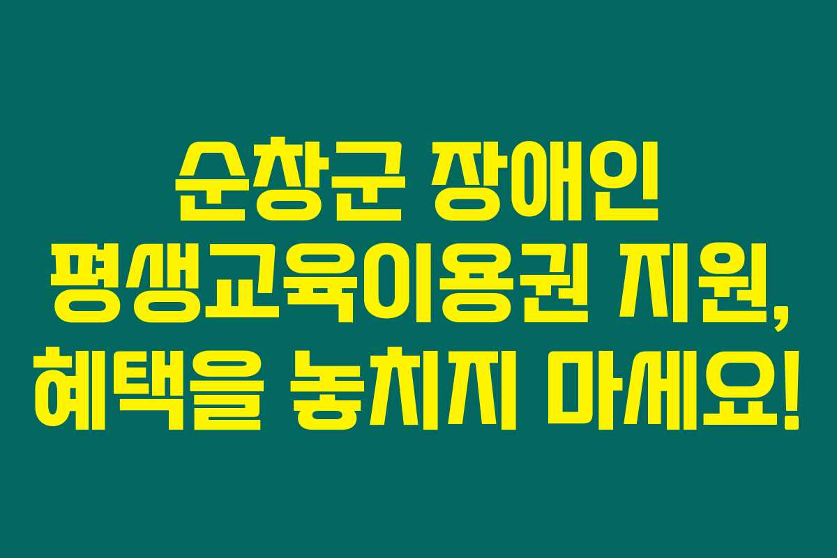 제가 직접 체크해본 바로는 순창군에서 제공하는 장애인 평생교육이용권 지원 프로그램이 많은 관심을 받고 있어요. 이 지원은 19세 이상 등록 장애인을 대상으로 하며, 평생교육 강좌 수강에 큰 도움이 될 것입니다. 아래를 읽어보시면 순창군의 장애인 평생교육이용권 지원에 대한 정보와 혜택을 자세히 알아볼 수 있어요.