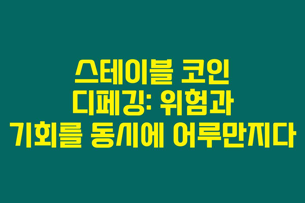 - 스테이블 코인 디페깅, 무엇을 의미할까?