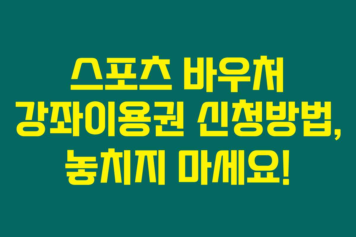 스포츠 바우처 강좌이용권에 대해 알고 계신가요? 만약 경제적인 여건 때문에 자녀에게 스포츠 강좌를 제공해주기 어려운 상황이라면, 아래를 읽어보시면 꼭 필요한 정보를 찾을 수 있답니다. 저소득층 유소년과 청소년에게 제공되는 이 프로그램을 통해 스포츠 수업을 지원받을 수 있는 방법을 알려드릴게요!