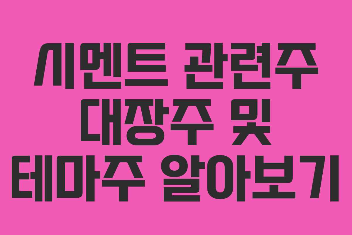 시멘트는 건설업에서 가장 기본적인 자재로, 시멘트 관련주는 시장에서 중요한 역할을 합니다. 이번 글에서는 주요 시멘트 대장주와 테마주에 대해 살펴보겠습니다.