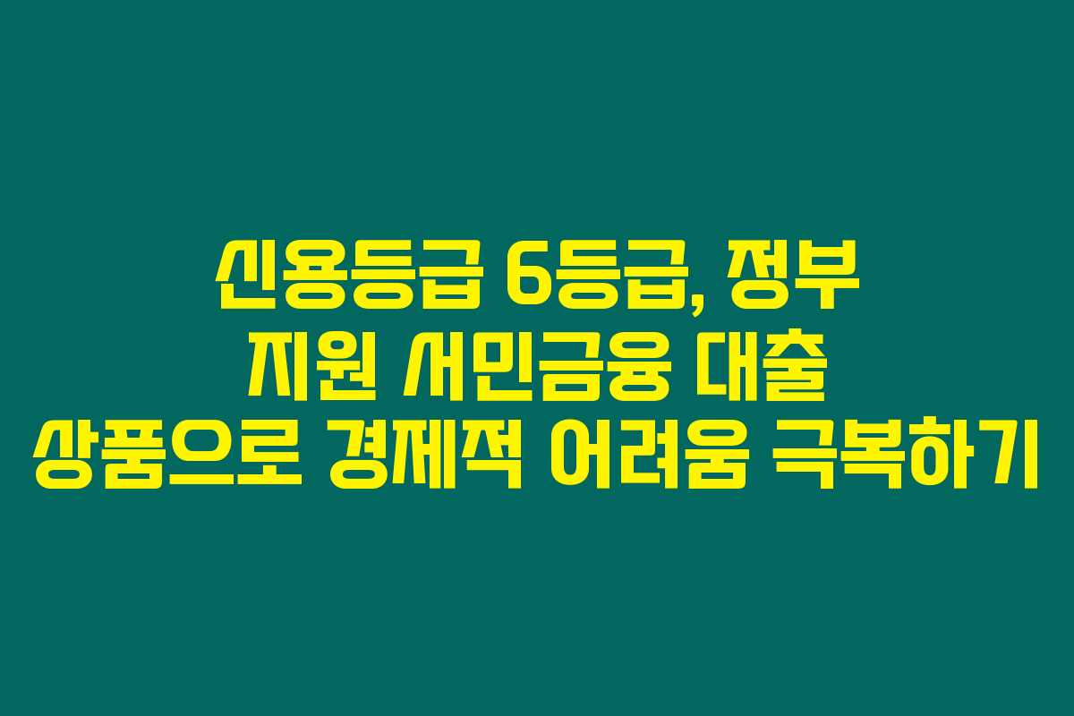 제가 직접 리서치한 바로는, 신용등급 점수가 6등급인 경우라도 정부에서 제공하는 서민금융 대출 상품을 통해 경제적 지원을 받을 수 있다는 사실입니다. 이러한 상품들은 저소득층 또는 신용점수가 낮은 분들이 자금을 원활하게 조달할 수 있게 돕기 위해 만들어졌습니다. 아래를 읽어보시면, 서민금융 대출 상품에 대한 유용한 정보와 팁을 얻으실 수 있을 것입니다.