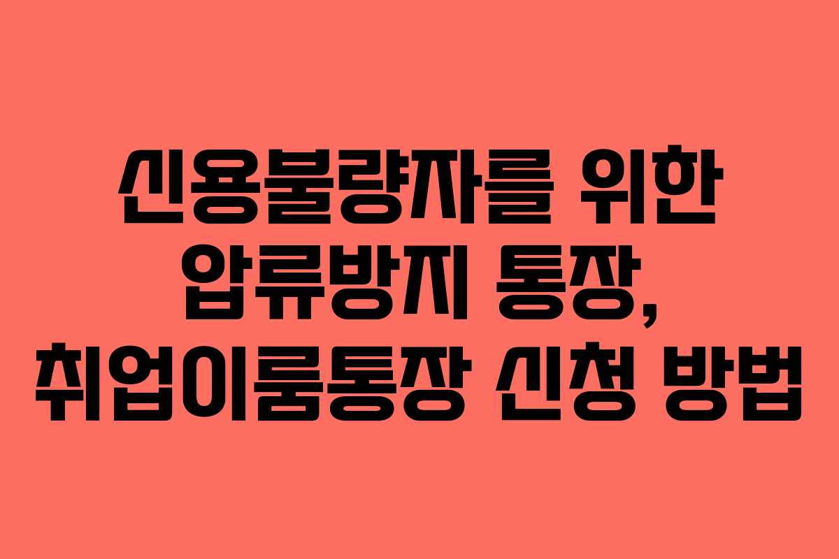 최근 경제 상황이 어려워짐에 따라 신용불량자들을 위한 지원 정책이 주목받고 있습니다. 그 중 하나가 바로 취업이룸통장입니다. 이 통장은 신용불량자도 개설할 수 있는 압류방지 전용 계좌로, 국민취업제도를 통해 신청할 수 있습니다. 이번 글에서는 취업이룸통장의 신청 방법과 국민취업지원제도의 혜택에 대해 자세히 알아보겠습니다.