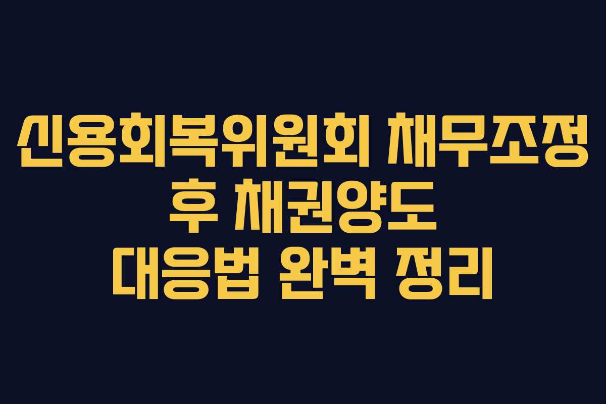신용회복위원회를 통해 채무조정을 마쳤더라도 금융기관이 채권을 제3자에게 양도하는 것은 발생할 수 있는 일입니다. 그러나 기존의 채무조정 내용은 그대로 유지되며, 새로운 채권자도 이를 따라야 한다는 점을 기억해야 합니다. 만약 새로운 채권자가 기존 조정 조건을 무시하고 무리한 변제를 요구하거나 강압적인 추심을 한다면, 즉시 신용회복위원회 또는 금융감독원에 문의하여 조치를 취하는 것이 중요합니다.