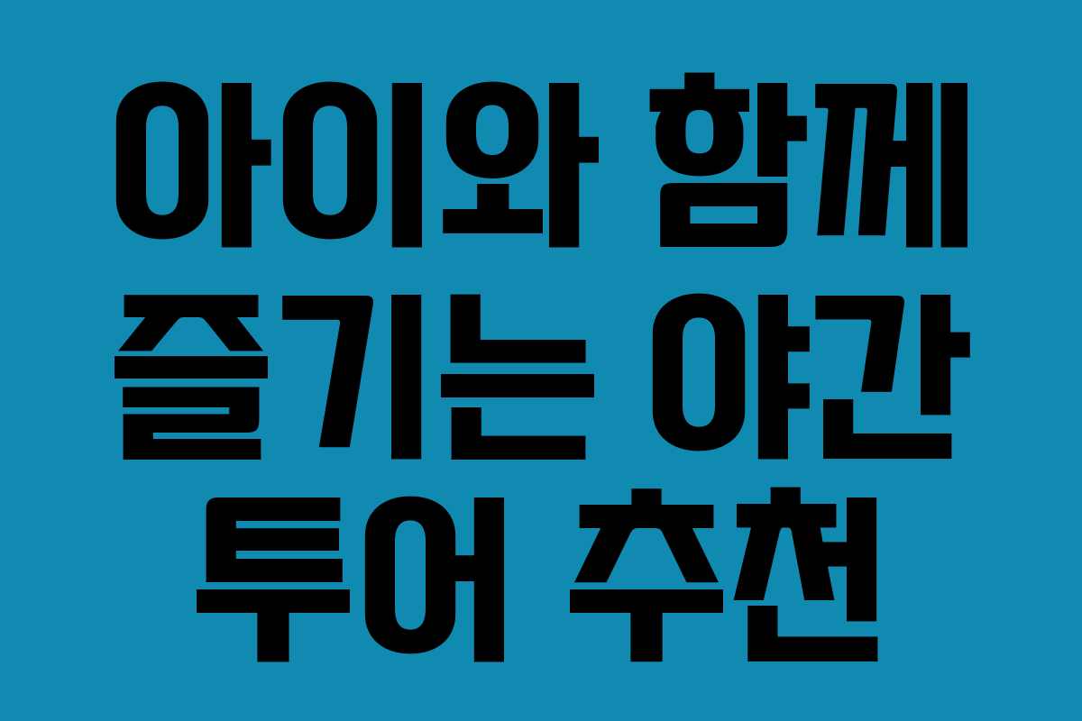 아이와 함께하는 야간 투어는 가족 모두에게 특별한 추억을 만들어 줄 것입니다. 각각의 장소에서 느낄 수 있는 아름다운 야경과 감성을 만끽하며, 잊지 못할 경험을 쌓아보세요.