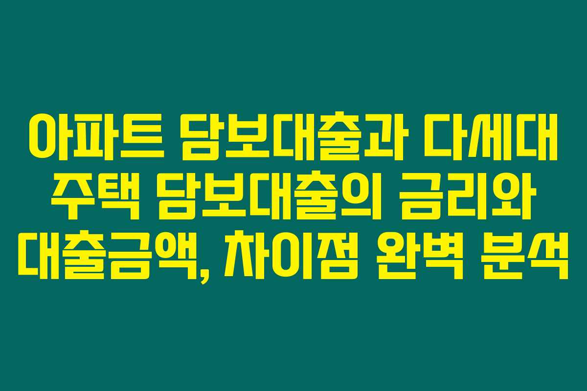- 아파트 담보대출과 다세대 주택 담보대출 이해하기