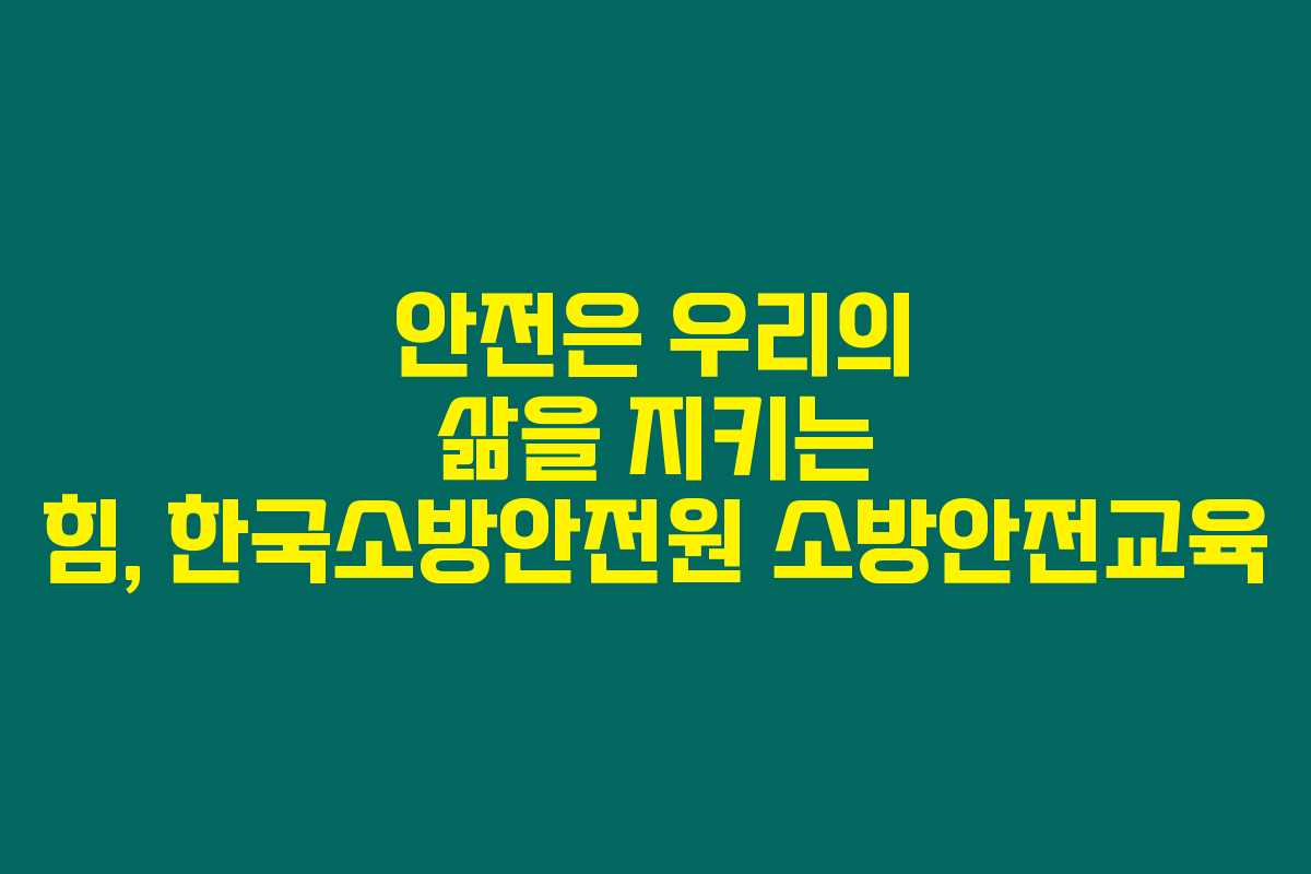 결론적으로, 소방안전교육은 지금 당장 시작해야 할 필수 과정입니다. 화재와 같은 비상 상황에서 나와 주변 사람들을 지키는 방법을 배우는 것이죠. 여러분도 한국소방안전원의 프로그램에 참여해보세요. 우리의 소중한 삶을 지키는 데 큰 도움이 된답니다. 안전은 나와 내 주변으로부터 시작됩니다.