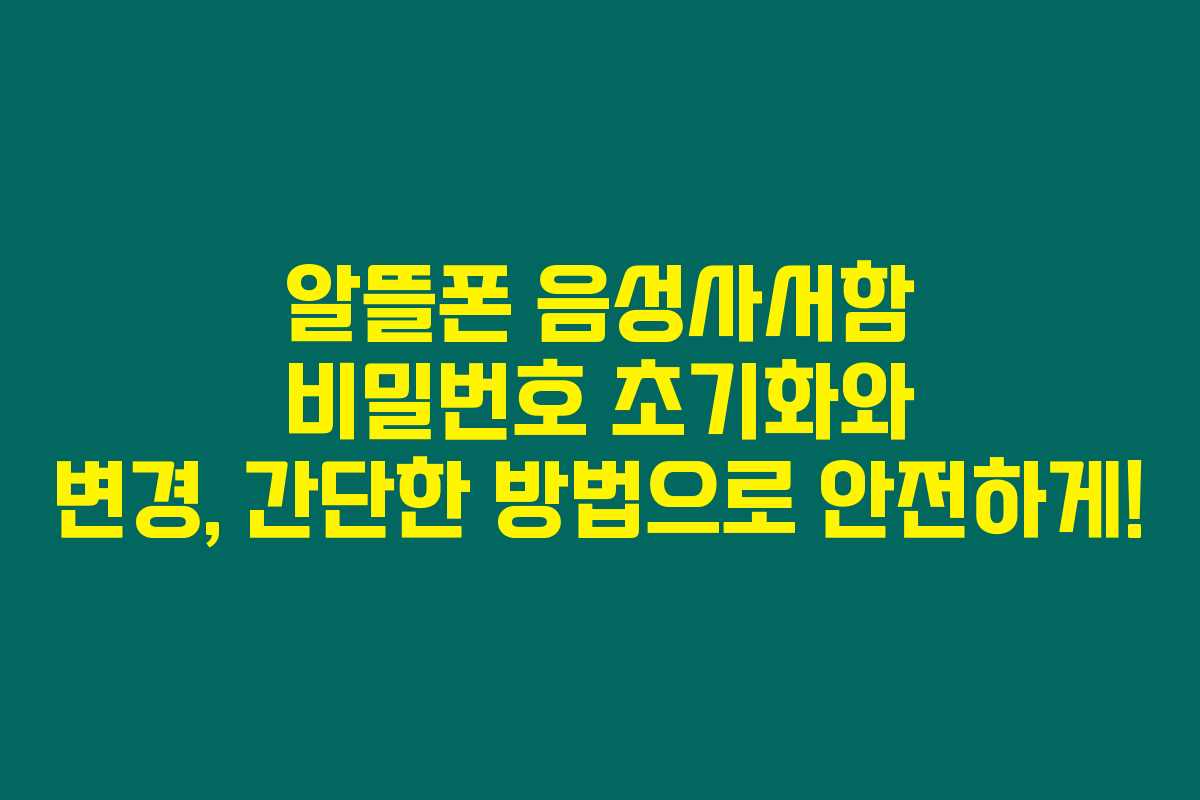 제가 직접 경험해본 결과로는 알뜰폰 음성사서함 비밀번호는 보안을 위한 중요한 요소로, 주기적으로 변경하거나 초기화하는 것이 좋습니다. 아래를 읽어보시면 제가 알아본 초기화 및 변경 방법에 대해 자세히 안내해 드리겠습니다.