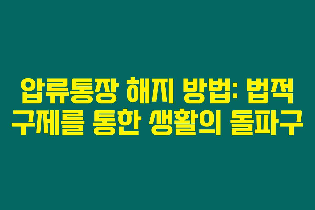 - 금융적 자유 회복: 통장이 압류된 경우, 급여 및 생활자금이 중단되어 생활이 어려워질 수 있어요.