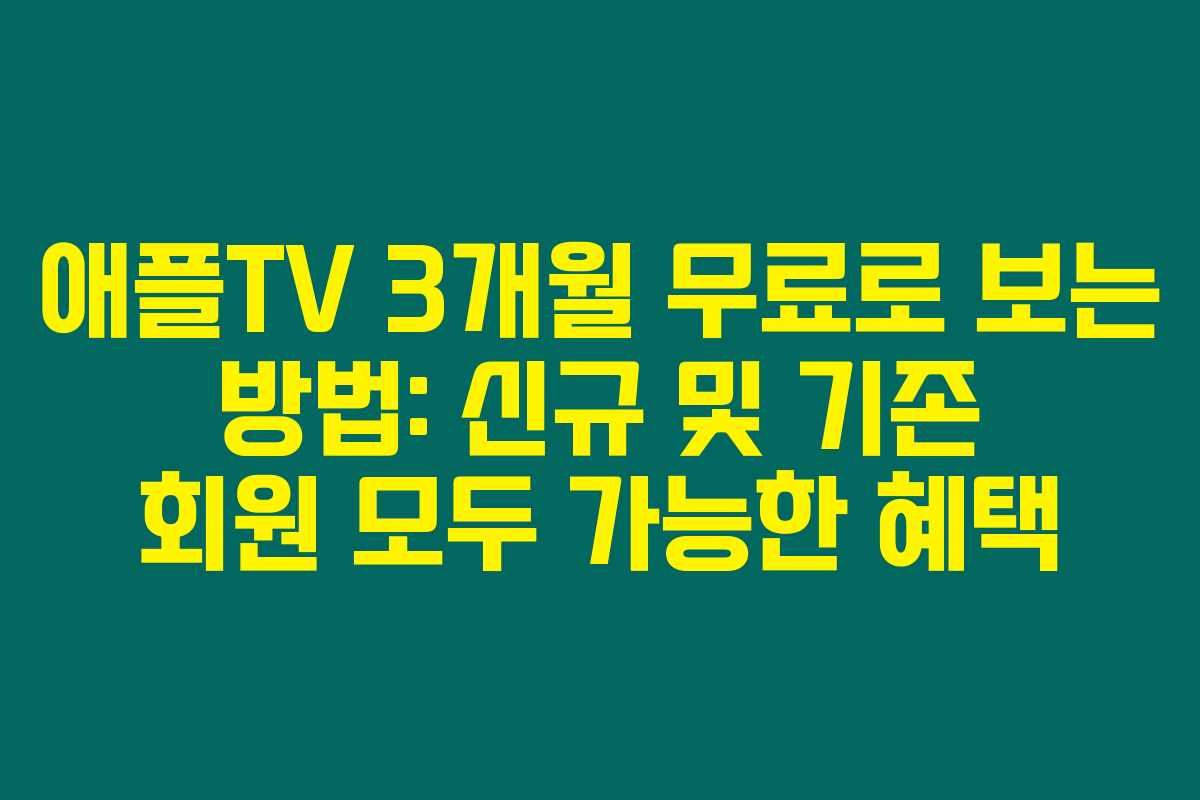 많은 사람들은 애플TV의 무료 프로모션이 신규가입자에게만 해당된다고 생각하죠. 하지만 의외로 기존 회원도 무료로 3개월을 즐길 수 있는 기회가 마련되어 있어요. 이 기회를 놓치지 마시고, 가입 절차를 간단히 진행해보세요.