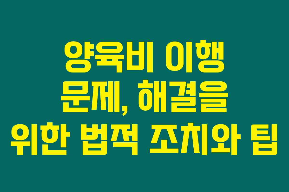 제가 알아본 바로는 이혼 후 양육비 문제는 많은 부모에게 심각한 고민거리가 되고 있죠. 양육비가 정해져 있지만 이행되지 않는 경우, 경제적 부담이 상당할 뿐 아니라 자녀의 권리도 침해될 수 있습니다. 아래를 읽어보시면 양육비 이행 문제에 대한 법적 조치 방안과 함께 실질적인 팁을 확인할 수 있습니다.