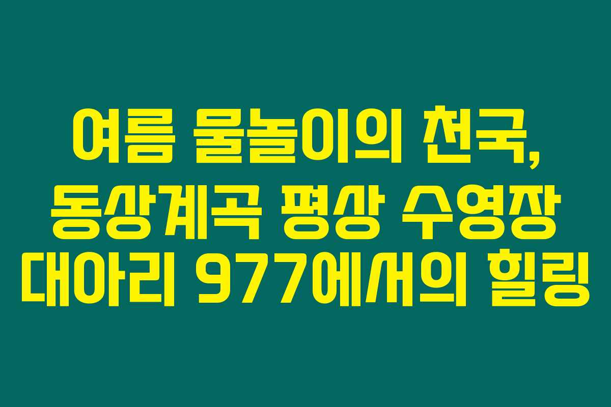 여름이 다가오면서 물놀이 계획이 있으신가요? 동상계곡 평상 수영장인 대아리 977에 방문하면 가족과 함께 특별한 힐링의 순간을 경험할 수 있습니다. 특히 여름 휴가철이 다가오면서 많은 분들이 코로나19로 인한 답답함을 날리기 위해 활발히 외출하고 있는 요즘, 이곳은 탁월한 선택이 될 거예요. 아래를 읽어보시면 동상계곡이 왜 물놀이를 위한 완벽한 장소인지 궁금해하실 지도 몰라요!