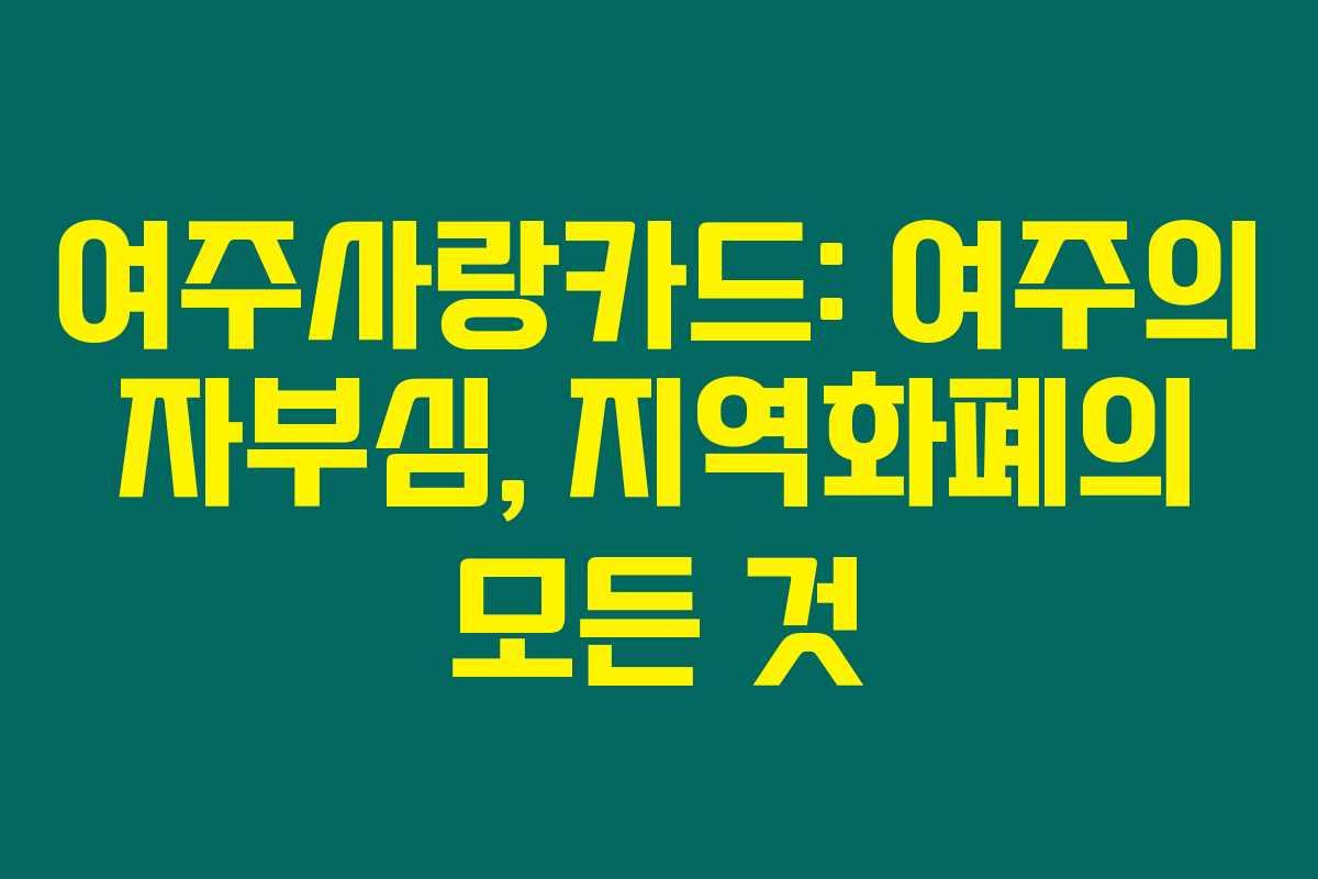 여주사랑카드는 경기도 여주에서 발행한 지역화폐로, 지역 내 소비를 촉진하고 경제 활성화에 기여하기 위해 설계되었답니다. 지역 주민뿐만 아니라 가까운 타 지역에 거주하는 분들도 쉽게 사용할 수 있는 점이 매력적이에요. 여주사랑카드는 지역 내 소상공인과의 협력을 통해 여주의 경제 순환을 도와주는 역할을 하고 있어요.