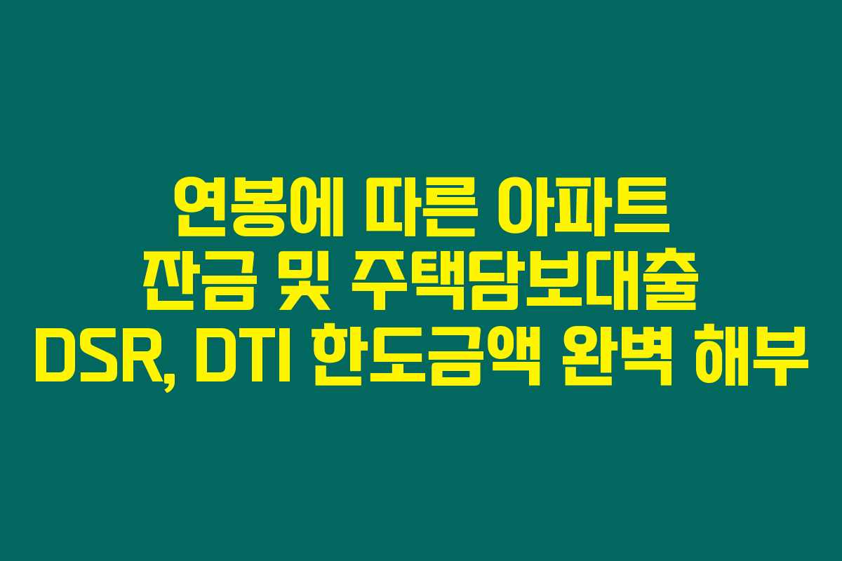 제가 직접 체크해본 바로는, 아파트 구매를 고려하는 많은 분들이 연봉에 따른 대출 가능 금액을 가장 큰 관심거리로 두고 있습니다. 특히, DSR(총부채원리금상환비율)과 DTI(총부채상환비율)의 개념은 대출 한도를 결정하는 데 매우 중요하답니다. 아래를 읽어보시면, 연봉 3천만 원에서 7천만 원 사이의 아파트 잔금 및 주택담보대출 한도를 정리하고, 대출 승인율을 높이는 방법을 알아보실 수 있습니다.