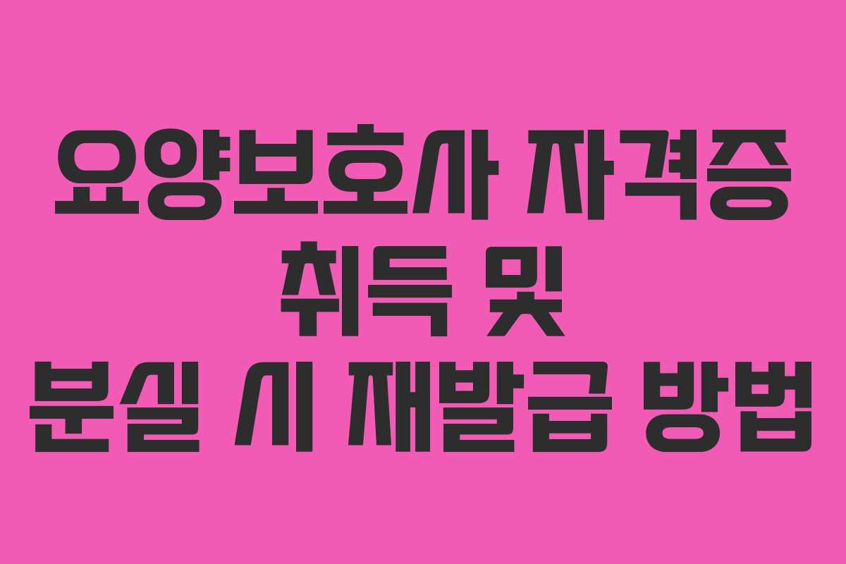 요양보호사 자격증은 노인 및 장애인을 대상으로 하는 전문적인 서비스 제공을 위한 중요한 자격입니다. 이 글에서는 요양보호사 자격증을 취득하는 방법과 만약 자격증을 분실했을 경우 재발급받는 방법에 대해 자세히 설명하겠습니다.