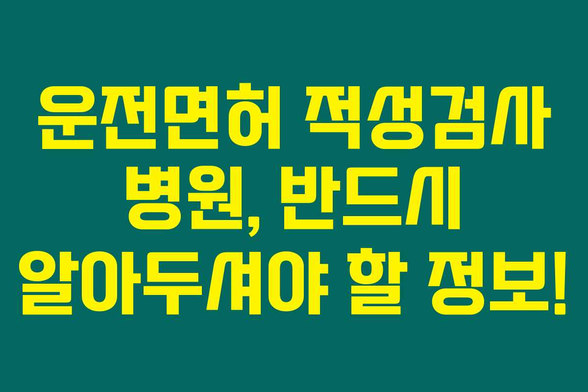 운전면허 적성검사 병원이 필요하시다면 이 정보를 바탕으로 꼭 확인해 보시고, 안전한 운전을 유지해 나가세요.