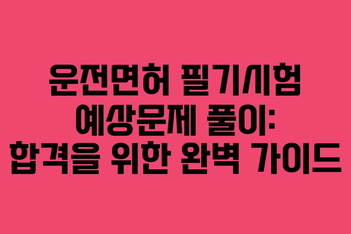 운전면허 필기시험은 체계적인 준비와 연습이 중요합니다. 도로교통공단의 자료를 활용하고, 모바일 앱을 통해 언제든지 예상문제를 풀어보세요. 최신 정보를 바탕으로 충분한 연습을 한다면 어렵지 않게 합격할 수 있을 것입니다.