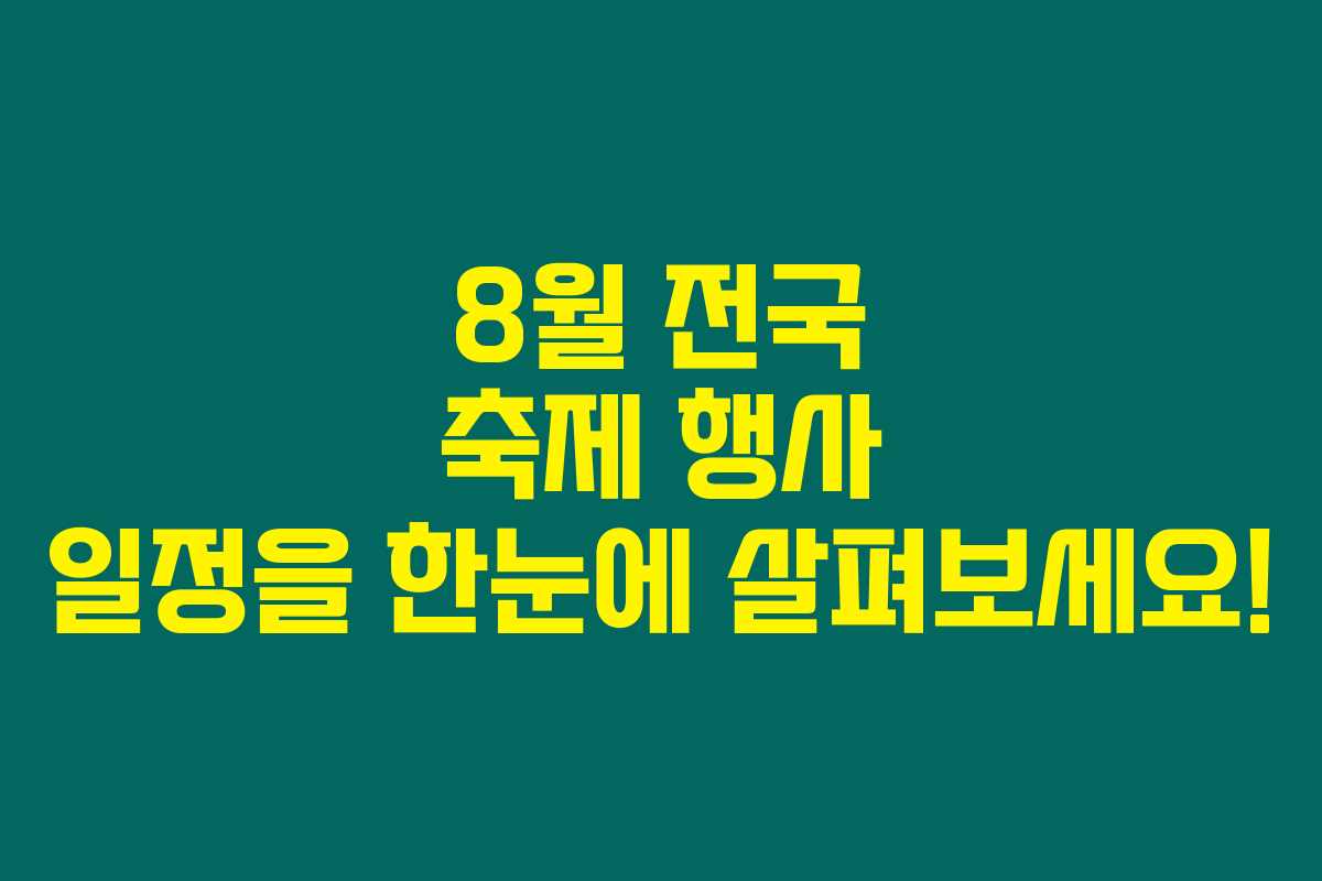 8월 전국 축제는 구경할 것도 넘쳐나고 신나는 추억을 쌓을 수 있는 기회랍니다. 다양한 축제 중에서 어떤 축제를 선택할지 고민해보세요! 그럼 즐거운 여름 보내세요!