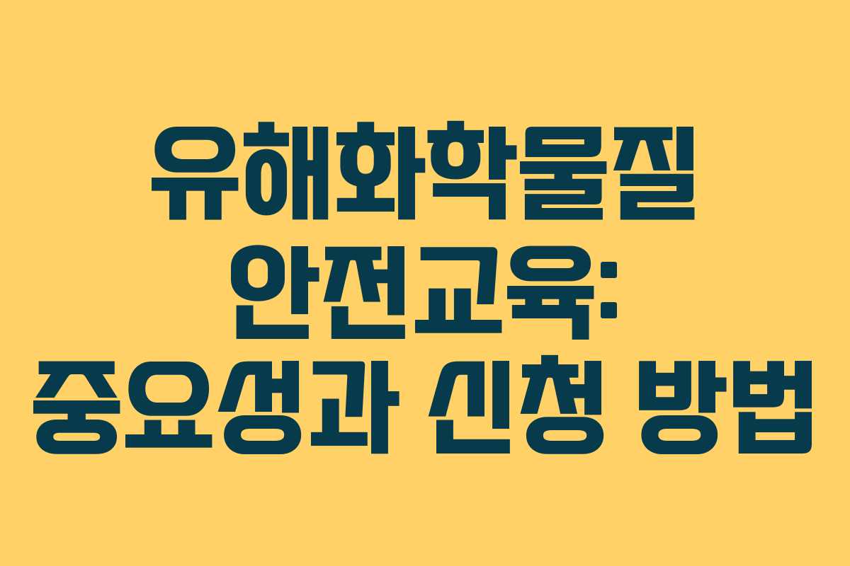 유해화학물질 안전교육은 안전한 작업 환경을 조성하기 위해 필수적으로 이수해야 하는 과정입니다. 이 글에서는 유해화학물질 안전교육의 중요성과 교육 신청 방법에 대해 자세히 안내하겠습니다.