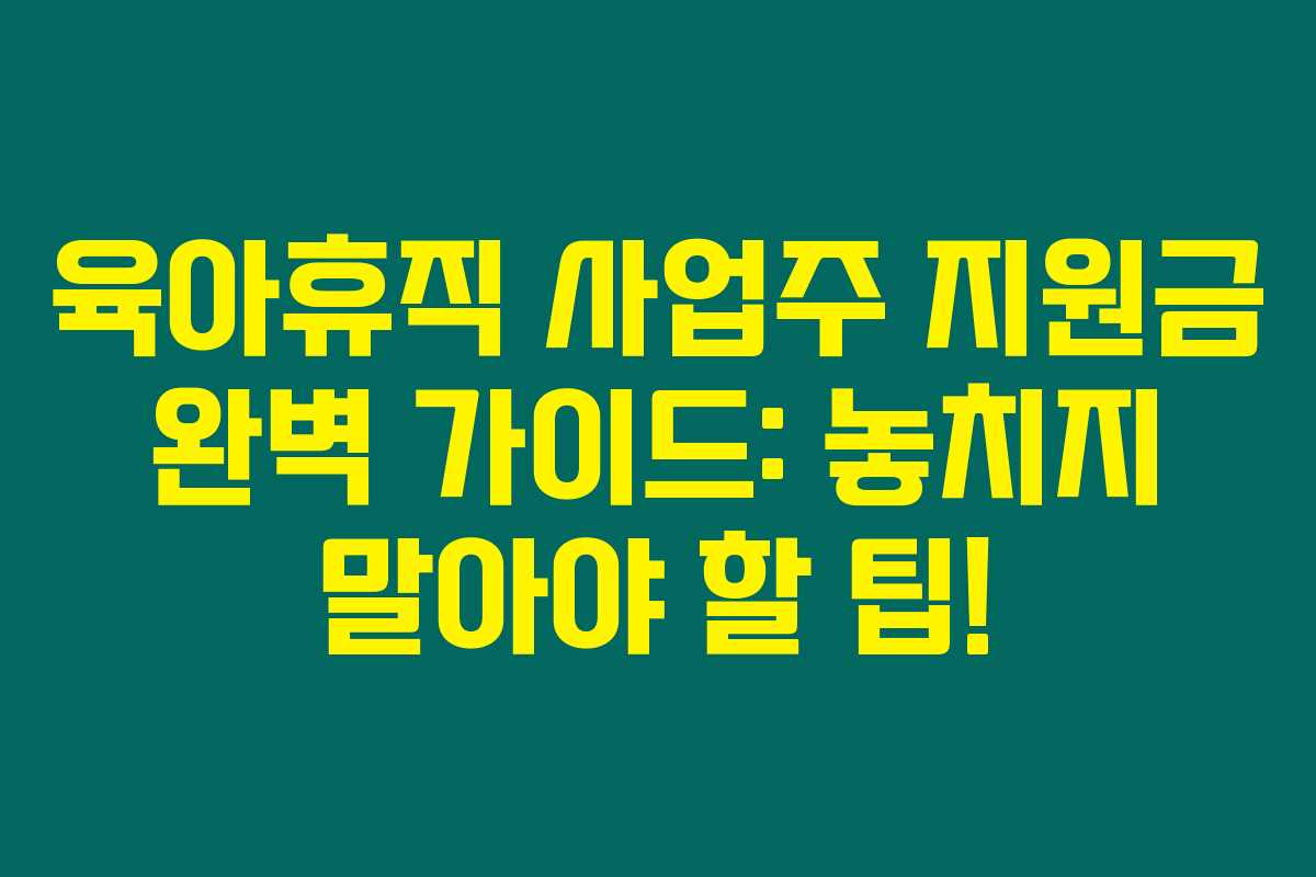 육아휴직 사업주 지원금 완벽 가이드: 놓치지 말아야 할 팁!