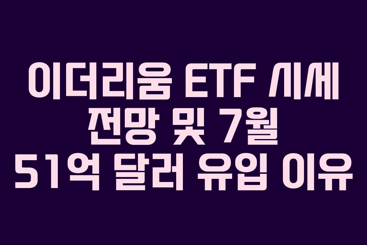 최근 이더리움에 대한 관심이 급격히 증가하고 있습니다. 특히 7월에만 51억 달러의 대규모 자금이 유입되면서 이더리움 ETF의 시세 전망도 주목받고 있습니다.