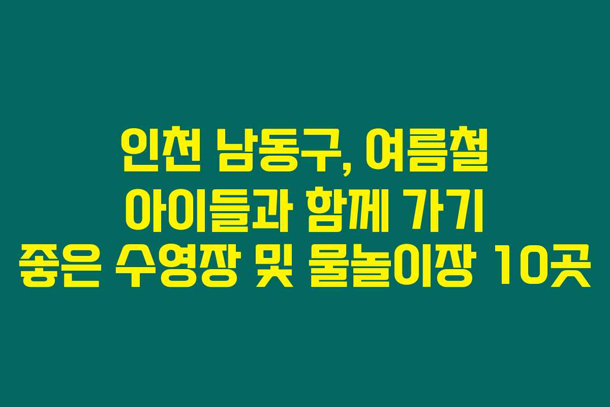 여름철, 아이들이 물놀이를 즐길 수 있는 인천 남동구 수영장과 물놀이장을 찾고 계시다면 주목해 주세요. 특히 자녀가 있는 가정이라면 더더욱 이 정보를 확인하셔야 한답니다. 여름 피서지로 알맞은 이곳에서 신나는 물놀이를 즐기며 아이들을 행복하게 만들어 주세요. 아래를 읽어보시면 여러 가지 물놀이 장소와 운영 사항이 정리되어 있으니 놓치지 마세요!