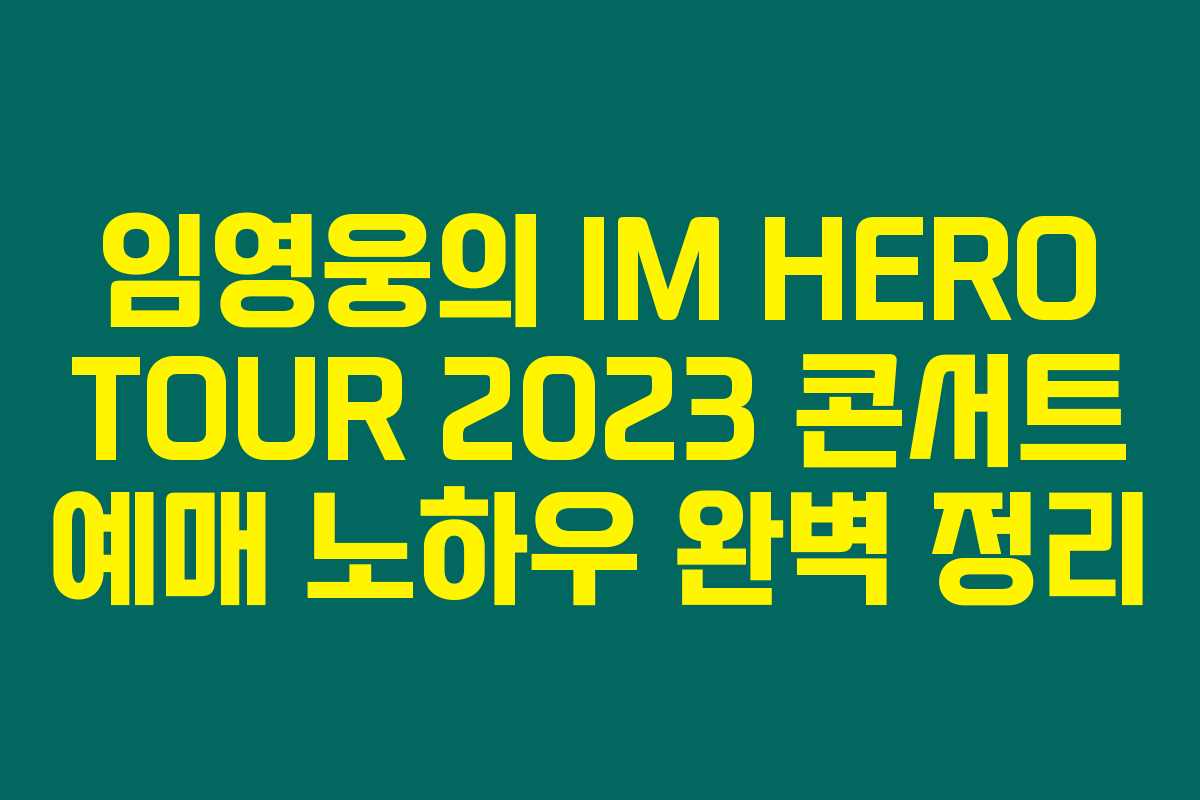 이듯이 IM HERO TOUR 2023은 당연히 임영웅의 팬덤을 고려했을 때, 반드시 확인해야 할 정보입니다. 당신이 콘서트를 놓치고 싶지 않다면 이 정보를 놓치지 말아야 해요.