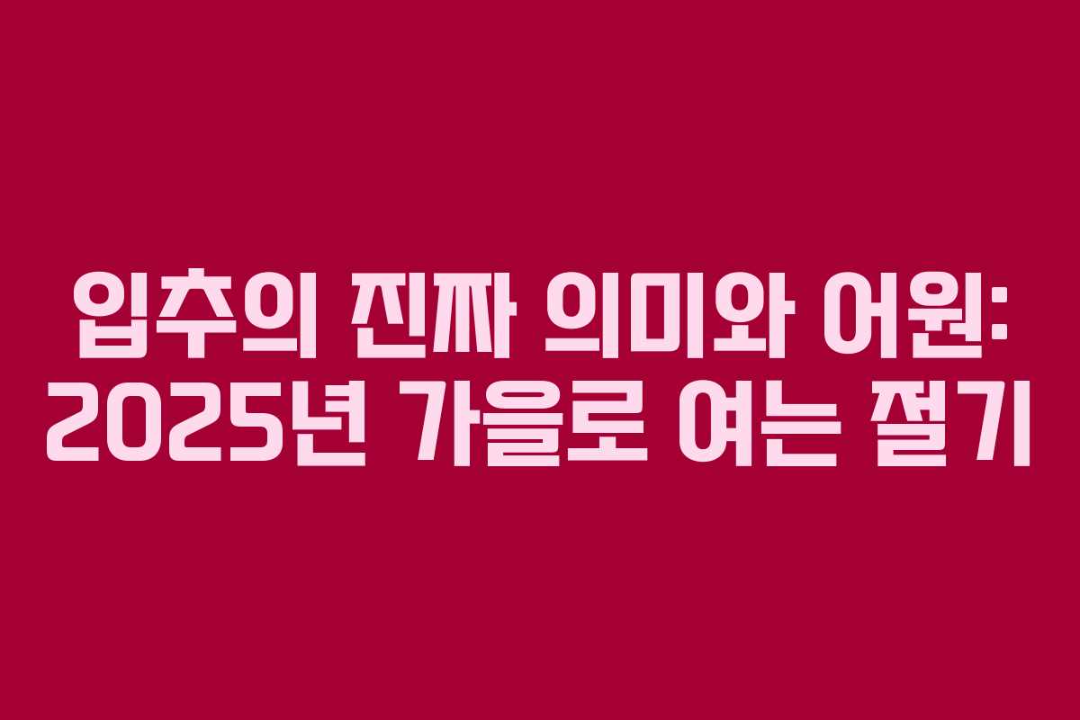 아래를 읽어보시면 입추의 역사적 의의와 어원을 새롭게 이해하고, 2025년 날짜를 바탕으로 현대 생활에 적용하는 지혜를 확인하실 수 있습니다.