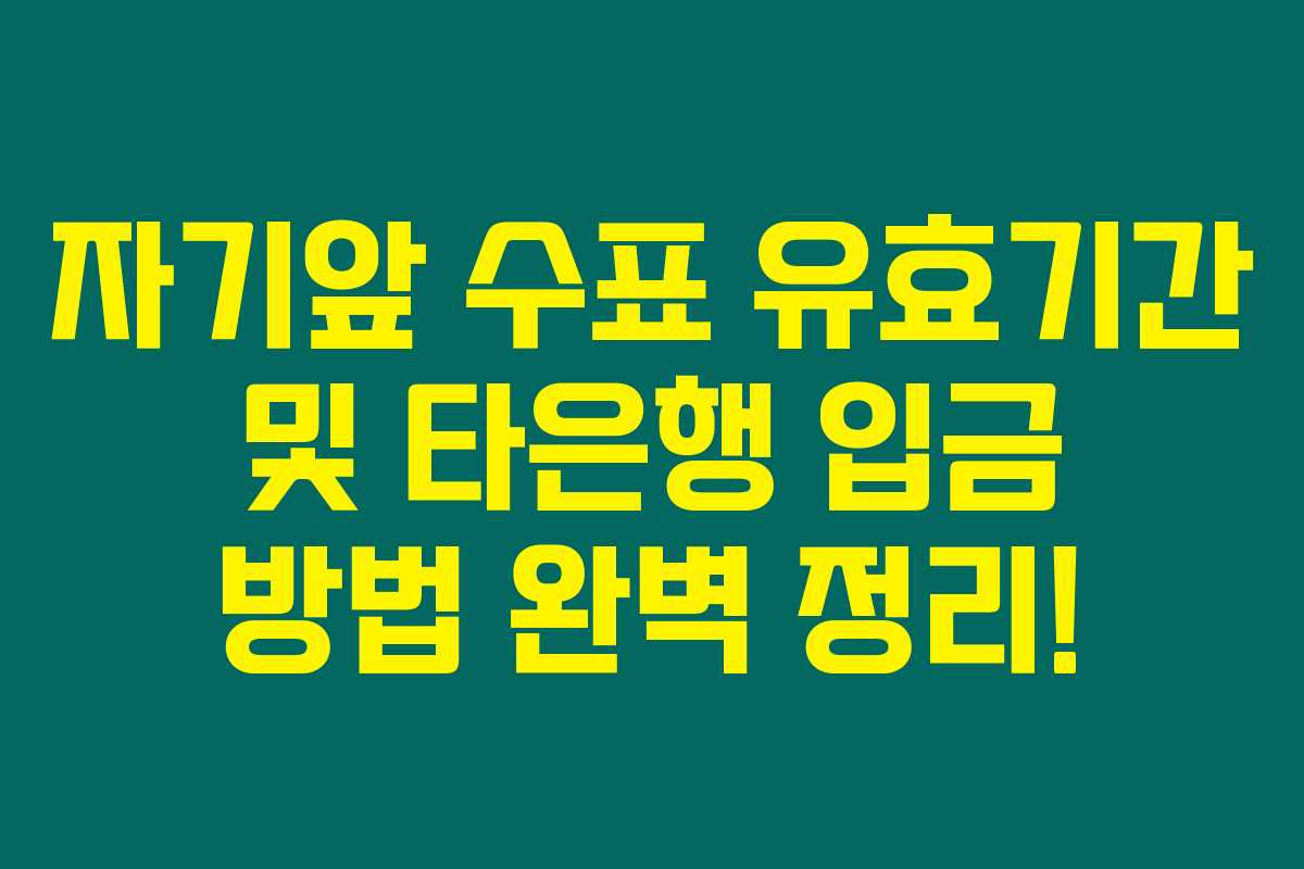 제가 직접 경험해본 결과로는, 자기앞 수표는 부동산 거래 등에서 매우 중요한 금융 도구로 사용됩니다. 그러나 수표의 유효기간 및 타행 입금 방법을 잘 모르는 분들도 많으신데요. 아래를 읽어보시면 궁금증이 해소될 거예요.