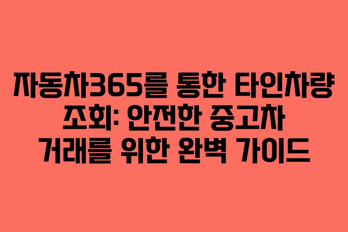 중고차 거래에서 차량 이력을 확인하는 것은 매우 중요합니다. 자동차365를 통해 타인차량 조회 서비스를 이용하면 더욱 안전하고 신뢰성 있는 거래를 할 수 있습니다.