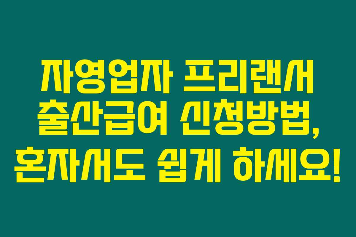 자영업자나 프리랜서로 일하는 당신! 출산급여 신청방법을 알고 계신가요? 출산급여는 1인 자영업자나 프리랜서에게도 큰 도움이 될 수 있다는 사실을 아는 사람이 많지 않아요. 만약 출산으로 인해 수입이 줄어들 걱정이신 분이라면, 이 글을 통해 오늘 소개할 출산급여 신청방법을 놓치지 말고 확인하세요!