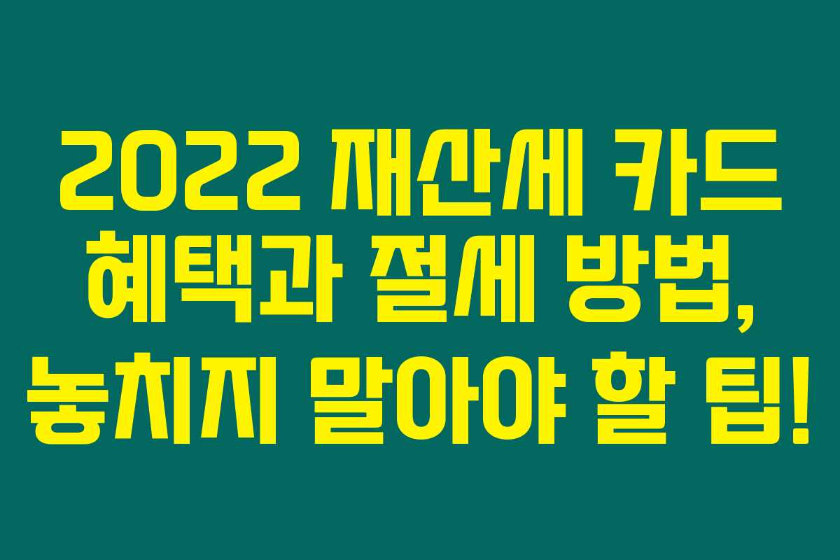 재산세 납부 시 유용한 카드혜택과 절세 방법을 꼼꼼히 체크하고, 더욱 스마트한 세금 관리로 재정적 부담을 덜어보세요.