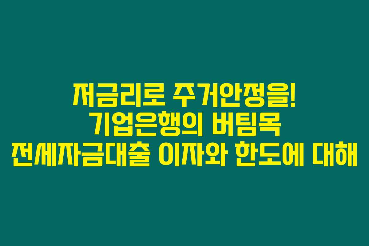 제가 직접 경험해본 결과로는, 기업은행의 버팀목전세자금대출은 주거 안정을 위한 훌륭한 선택이라는 것을 알게 되었습니다. 특히, 근로자와 서민에게 저금리로 제공되는 이 대출 상품은 많은 분들에게 도움을 줄 수 있는 좋은 기회랍니다. 아래를 읽어보시면 이 대출의 이자, 한도, 신청 자격 등에 대해 자세히 알아볼 수 있을 거에요.