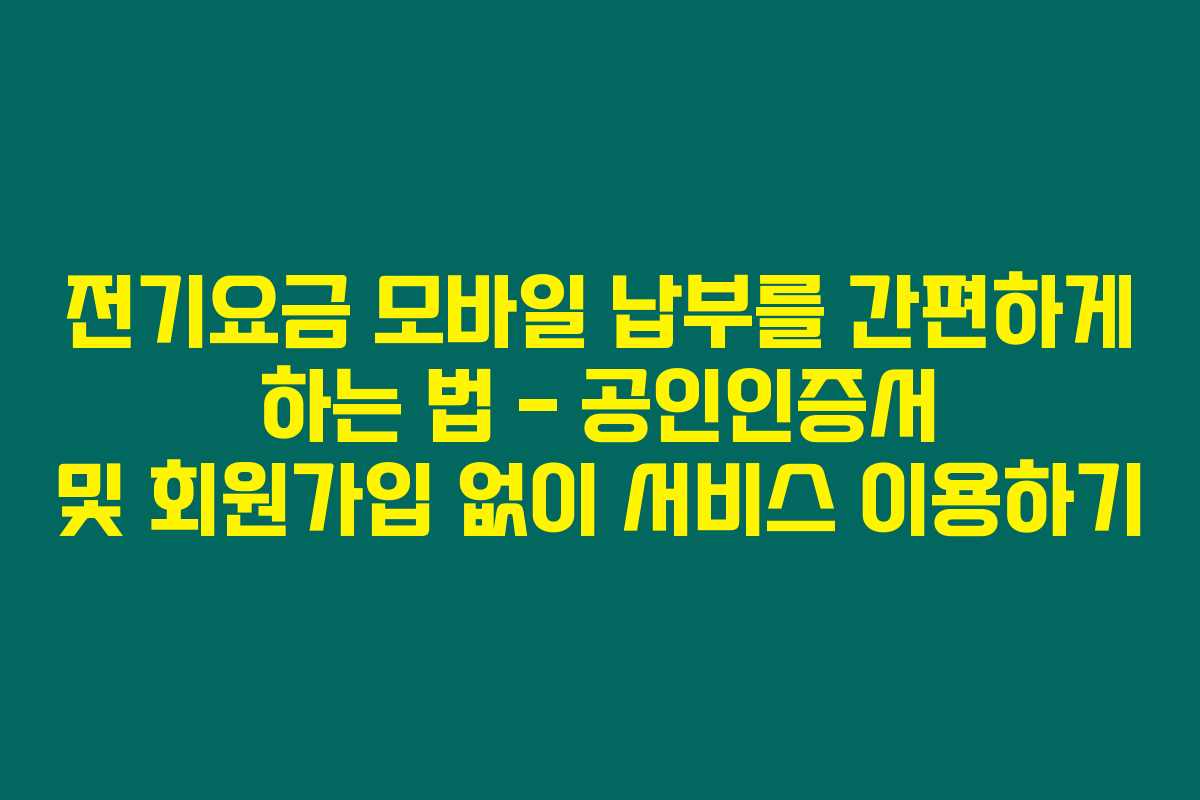 전기요금을 납부할 때마다 청구서를 준비하고 복잡한 절차에 시달리는 경험, 다들 있으시죠? 특히 공인인증서나 회원가입이 필수라면 더 불편할 수밖에 없습니다. 하지만 모바일로 손쉽게 해결할 수 있는 방법이 있습니다.