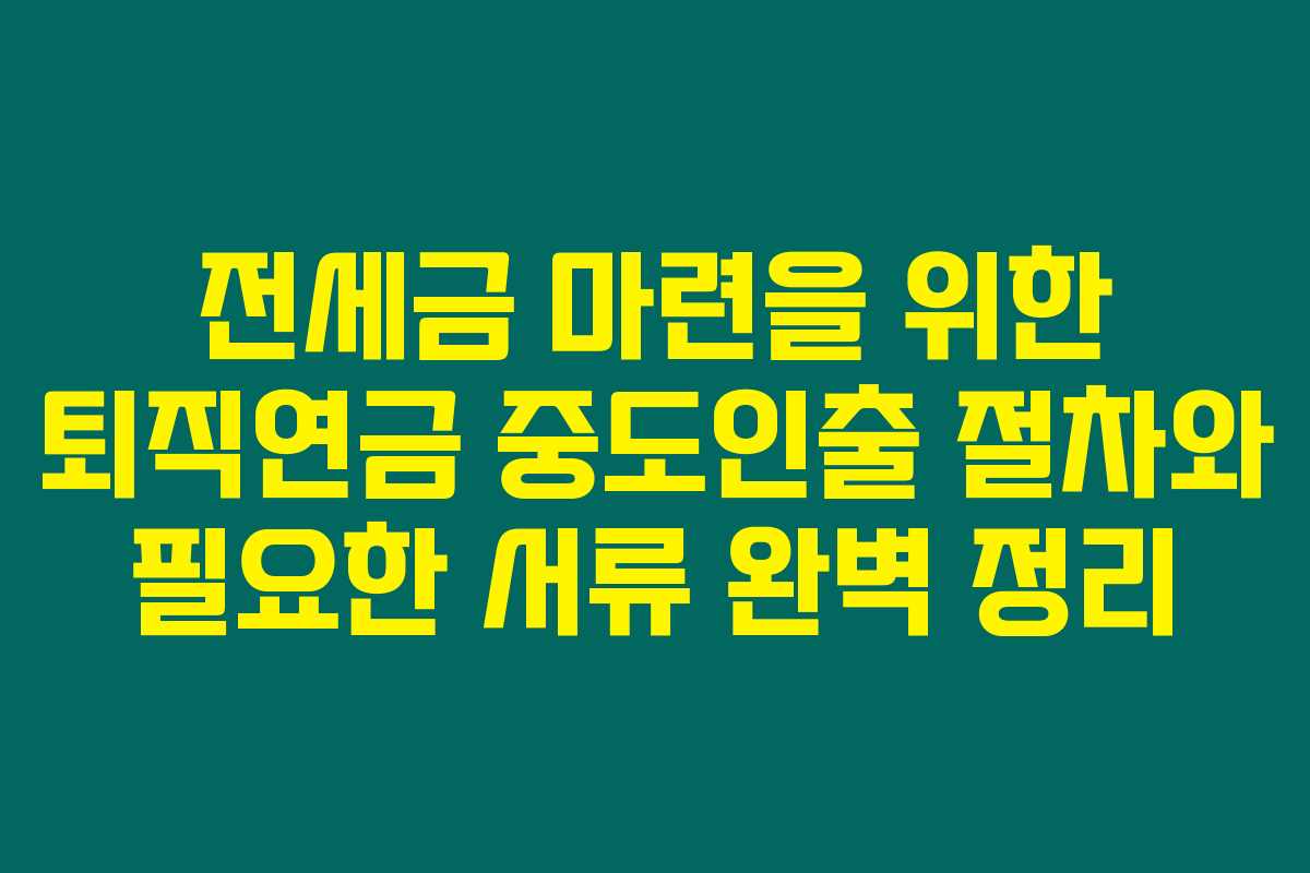 제가 직접 경험해본 결과로는, 전세금 마련을 위해 퇴직연금의 중도인출이나 퇴직금의 중간정산이 가능합니다. 이번 글에서는 퇴직연금 중도인출을 통해 전세금을 마련하고자 하는 분들을 위해 필수적인 서류와 요건을 정리해보았습니다. 아래를 읽어보시면 필요한 정보와 절차를 이해하는 데 큰 도움이 될 것입니다.