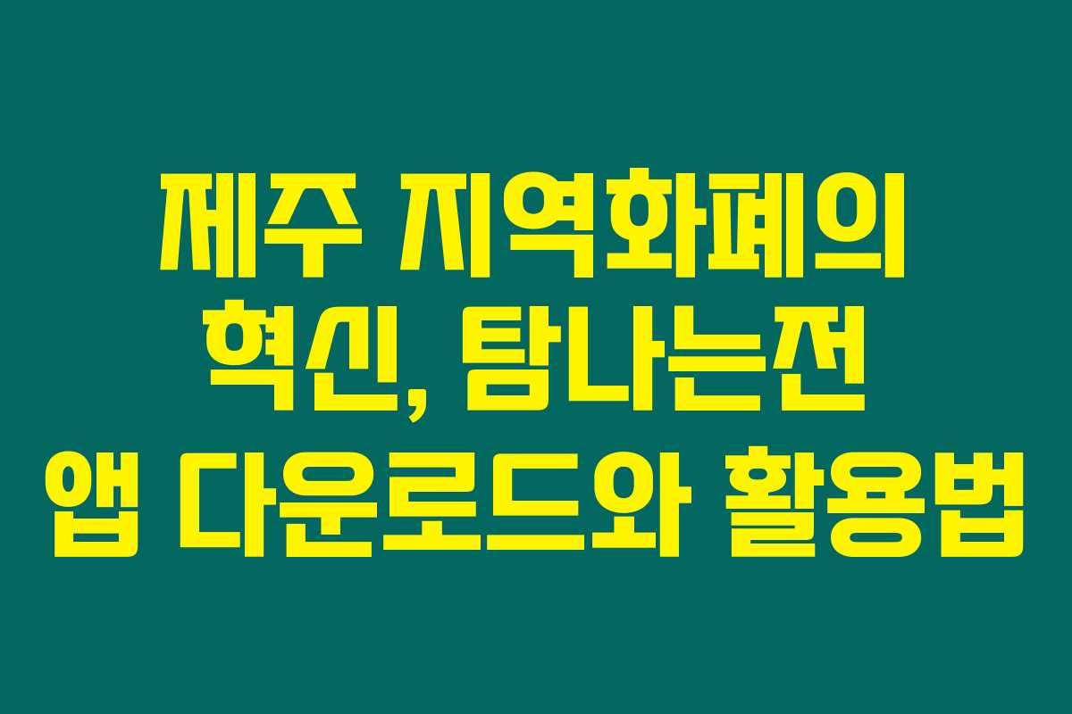 제주 지역화폐의 혁신, 탐나는전 앱 다운로드와 활용법