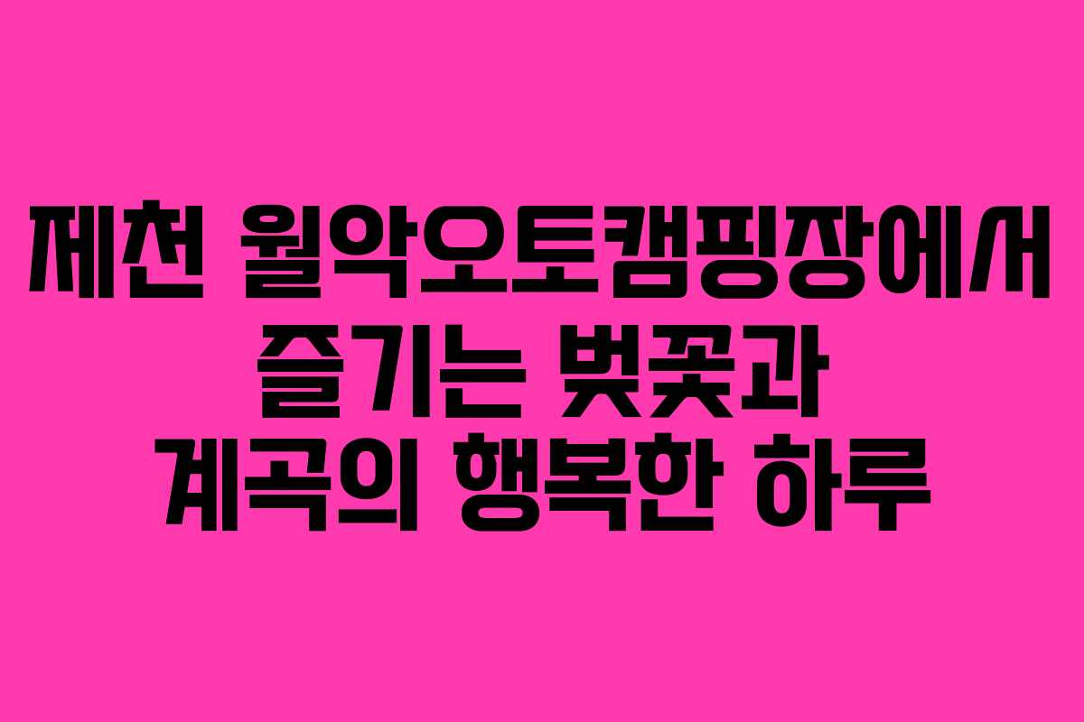 월악오토캠핑장은 제천에서 벚꽃과 자연을 동시에 즐길 수 있는 특별한 장소이다. 가족과 함께하는 즐거운 캠핑 경험은 소중한 추억으로 남을 것이며, 자연 속에서 아이들과의 소통과 소중한 시간을 보낼 수 있는 최적의 장소로 추천할 수 있다. 벚꽃이 만개하는 시기에 이곳을 방문한다면 더욱 잊지 못할 경험이 될 것이다.