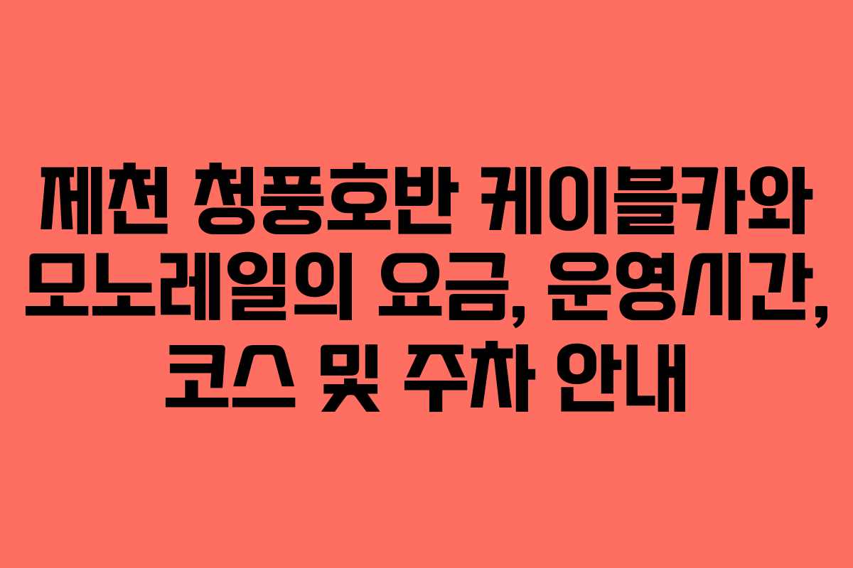 제천 청풍호반 케이블카는 아름다운 청풍호의 경관을 감상하며 특별한 경험을 제공합니다. 이곳에서 제공하는 모노레일 또한 빠르고 안전한 이동 수단으로, 청풍호의 매력을 한층 더 느낄 수 있게 해줍니다. 이 글에서는 2026년 기준으로 청풍호반 케이블카와 모노레일의 요금, 운영시간, 이용 코스 및 주차 안내에 대해 자세히 알아보겠습니다.