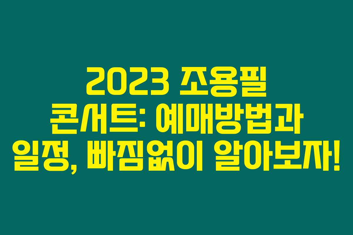 이번 2023 조용필 콘서트는 그 어느 때보다 기대되는 공연이에요. 많은 사람들이 함께 모여 조용필님의 음악을 즐길 수 있는 소중한 시간이 되기를 바랍니다. 티켓팅에 성공하시길 바라요!