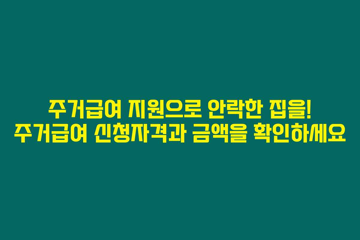 주거급여 지원으로 안락한 집을! 주거급여 신청자격과 금액을 확인하세요