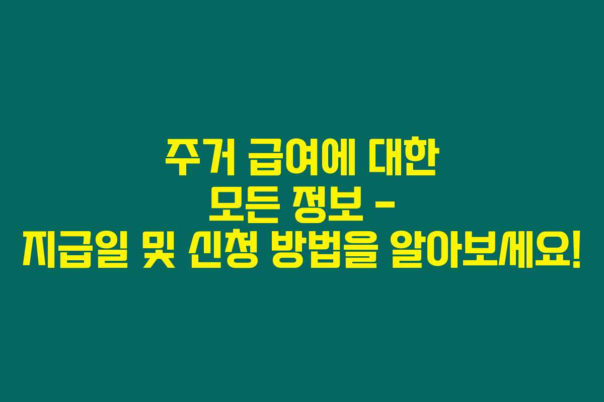 주거 급여에 관한 주제에 대해 상세히 알려드립니다. 제가 직접 경험해본 결과로는, 주거 급여는 저소득 가정의 주거 생활을 안정시키고 주거비 부담을 덜어주는 중요한 지원 정책이에요. 이 글에서는 주거 급여의 지급일 및 신청 방법을 알려드릴게요.