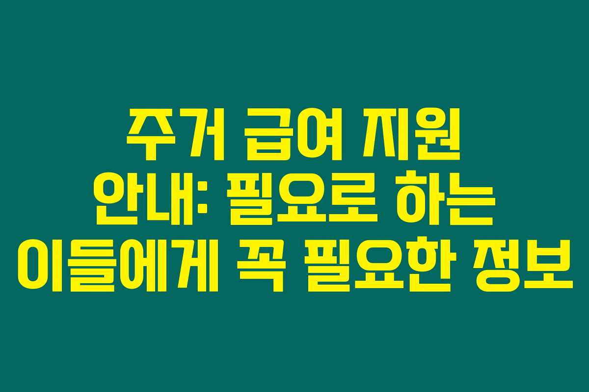 주거 급여는 거주 형태에 따라 다양한 지원 내용을 제공합니다. 따라서 자신에게 맞는 지원 유형을 정확히 파악하는 것이 중요해요.