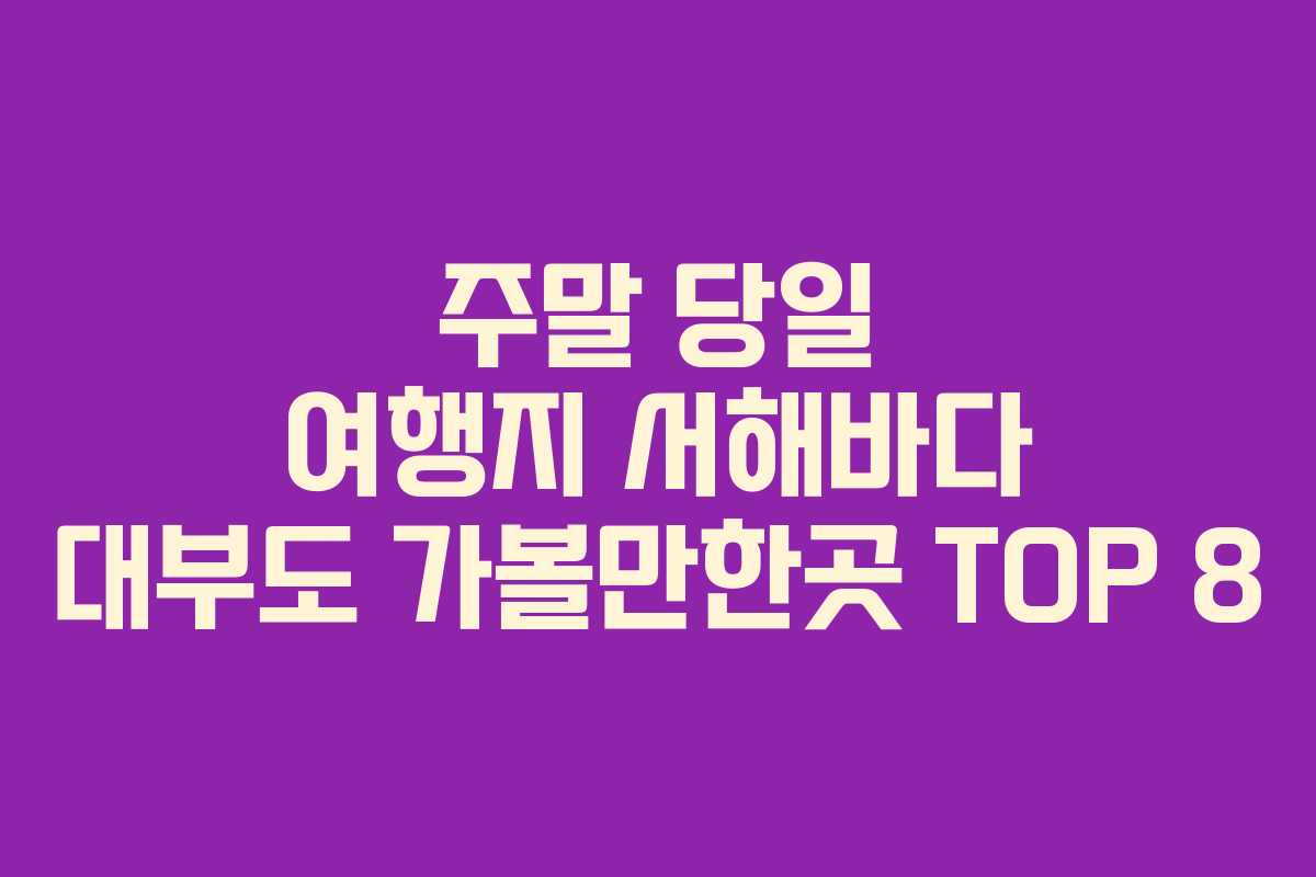 대부도는 경기도 안산에 위치한 매력적인 바다 여행지로, 가족 단위 나들이, 연인과의 드라이브, 혼자만의 힐링 여행에 적합합니다. 서울에서 차로 약 1시간 반 거리에 위치해 있어 접근성이 뛰어나며, 다양한 자연 경관과 체험거리를 제공합니다. 이번 글에서는 대부도의 가볼 만한 8곳을 소개합니다.
